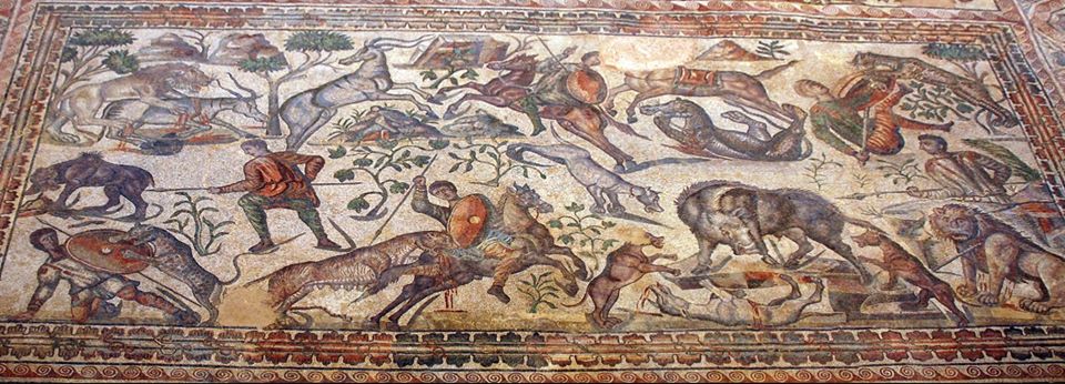 Recent DNA studies describe that in Spain most of the males of the neolitic were killed, and the Yamnayas tribes take all the womans in Spain for them, 8000 to 5000 years ago at least in the Bronce Era, and brough with them the ancestor of the Spanish Mastiff. But in those times they seem that did not brough with them heavy hounds for hunting with them, in roman mosaics, the Roman Molossus are well represented in Olmeda, Valencia Spain, and other toman mosaic era.