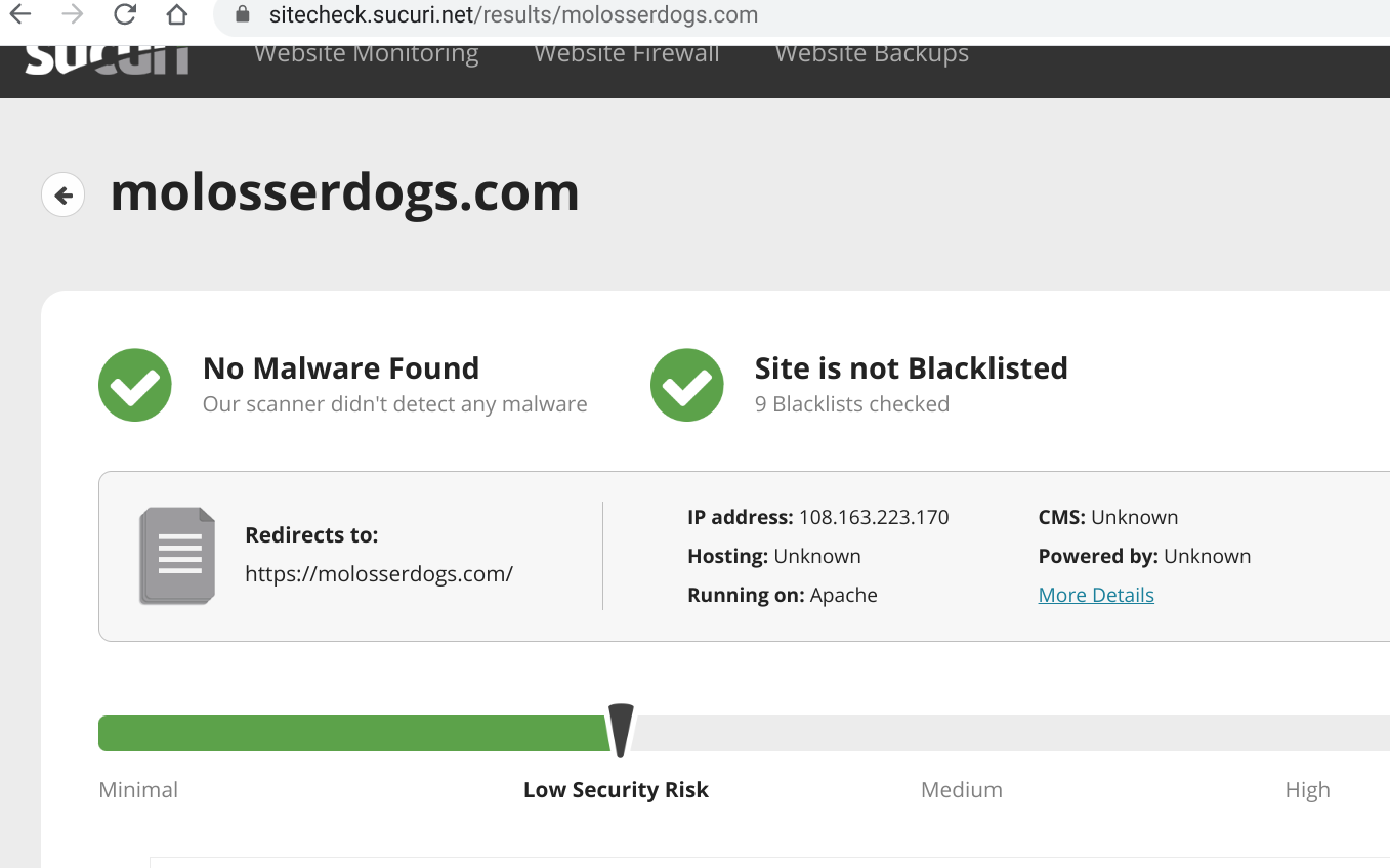 The infection URL is not https://molosserdogs.com so I don't think it is on MD.